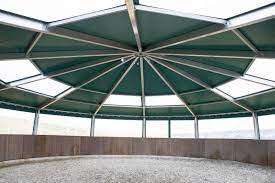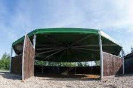 Unsere Longierhalle ist in zwei Größen erhältlich: Wählen Sie zwischen dem Durchmesser 16 bzw. 18 m und der Höhe 3,30 bzw. 4,00 m.